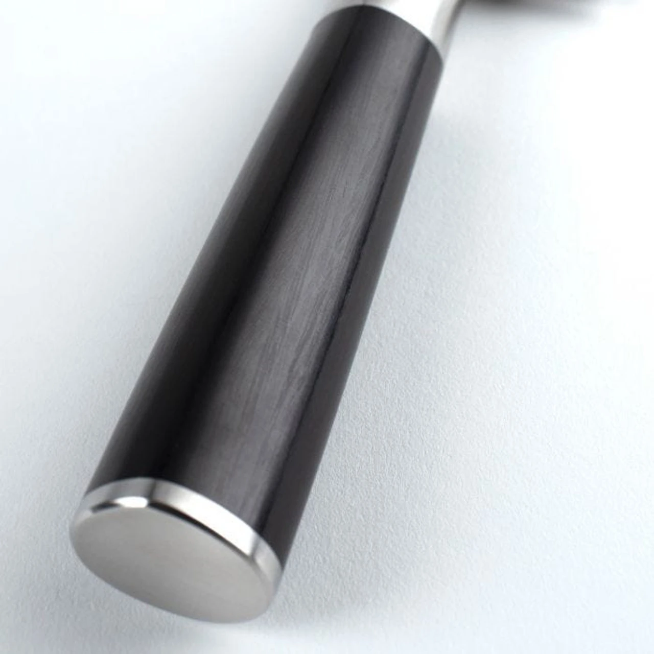 - D-shaped ebony PakkaWood® handles are comfortable for both left- and right-handed users; durable, beautiful, and won’t harbor bacteria