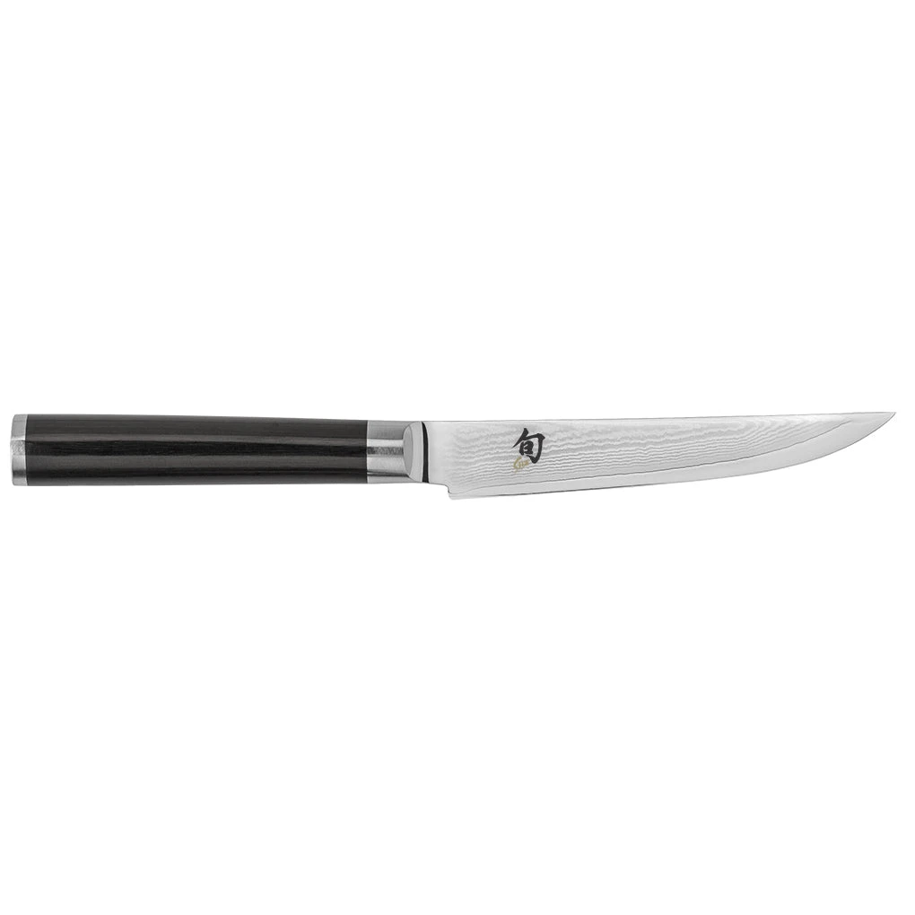 The Shun Classic Steak Knife is part of the Shun Classic line of tasteful and contemporary cutlery. The Shun Classic line features beautiful Damascus-clad blades and D-shaped ebony PakkaWood handles. Yet behind these handcrafted knives’ beauty is function: razor-sharp blades offering top performance. Shun’s proprietary high-performance VG-MAX steel, which provides incredible edge retention, is clad with Damascus stainless steel, then ground and bead-blasted, revealing the flowing pattern of the layered steel. The result is a line of knives that are sharp, durable, and corrosion resistant, as well as beautiful to behold. The Shun Classic line also offers you the widest assortment of both traditional culinary blade shapes and cutting-edge designs, so you can always find the right knife for the task.