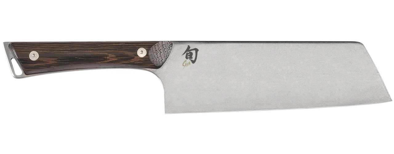 The Shun 7-in. Asian Utility is part of the Shun Kanso series. Kanso is a design principle based on Zen philosophy. It means “simplicity,” but simplicity that is achieved by eliminating the non-essential. In Kanso, we took away anything that doesn’t matter and kept everything that does: high-performance steel, razor-sharp edge, perfect balance, and precision cutting control. The steel is Japanese AUS10A—highly refined, high-carbon, vanadium stainless steel that takes a razor-sharp edge and holds it longer. Kanso’s Heritage finish hides scratches and gives Kanso a rustic look that just improves with age. The handle is made of a wood called tagayasan or wenge, which is sometimes known in Japan as “iron sword wood.” The handle contouring enables an easy chef’s grip. Full-tang construction provides strength, balance, and easy cutting control. Like all Shun knives, Kanso is sharpened to a 16° cutting angle each side to cut cleanly and help preserve food’s freshness and best taste.