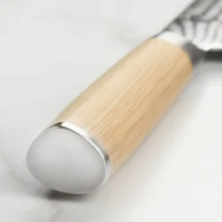 - 9″ AUS-10A Japanese steel blade with serrations for cutting bread and other tough foods.
