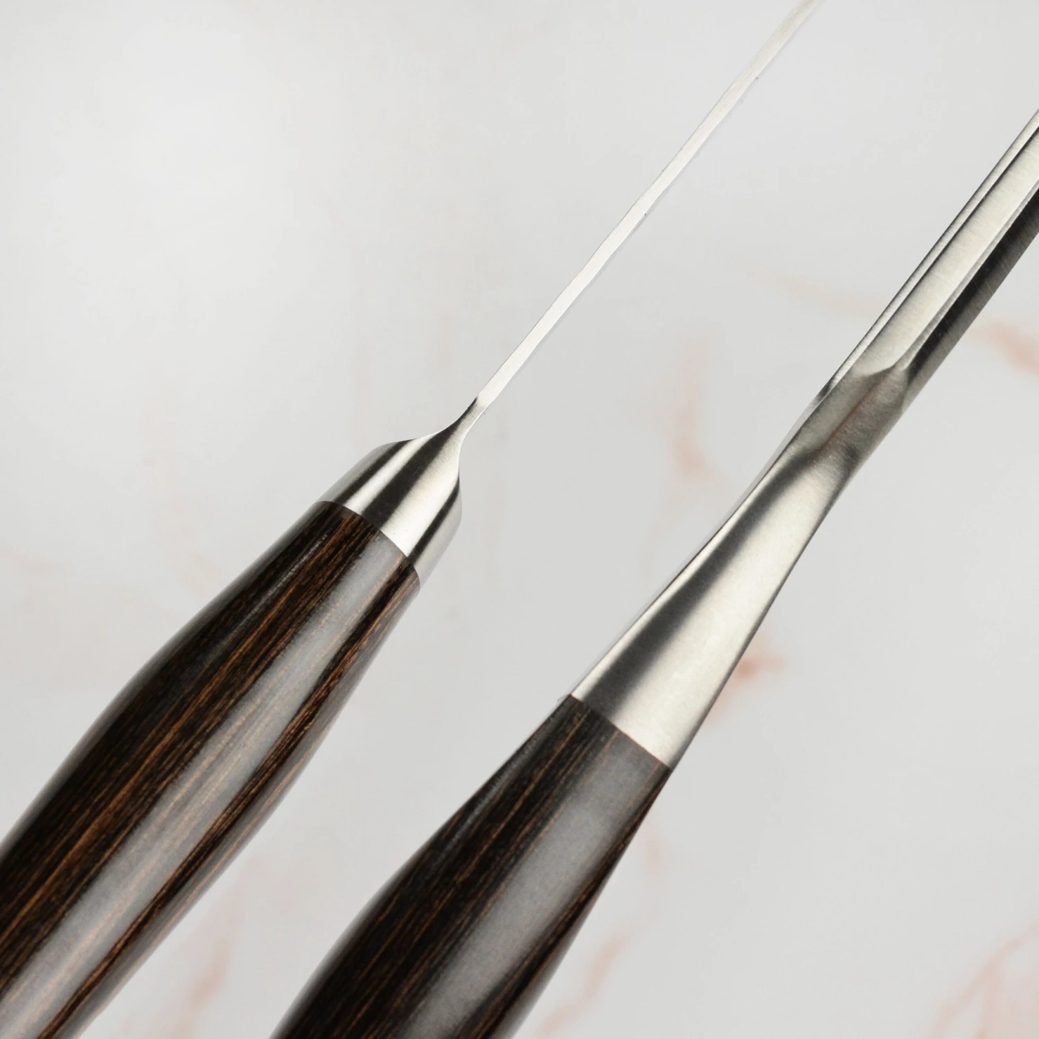 - Rockwell Hardness: 60-61; hand-sharpened Japanese double-bevel blade angle 16° (each side)