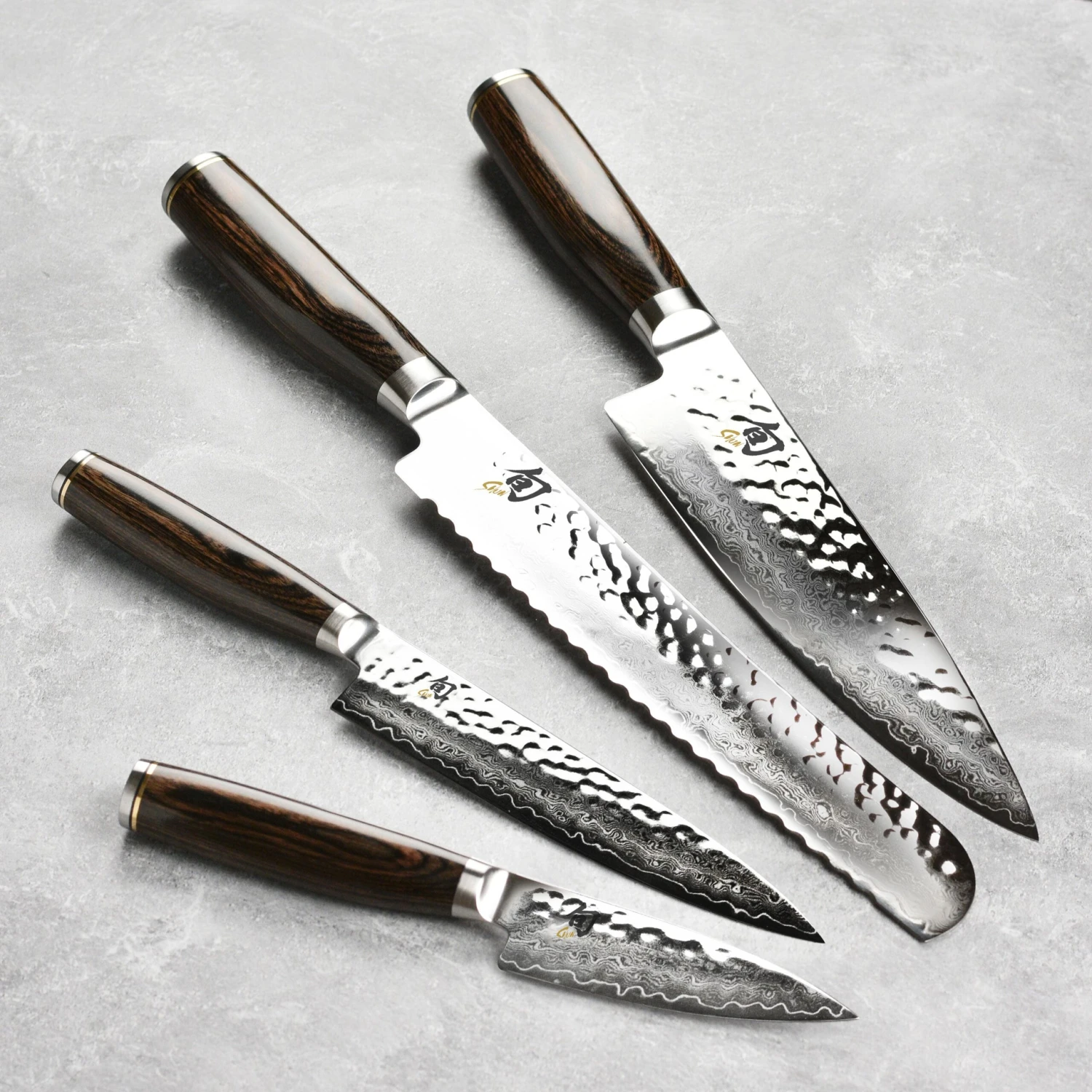 - VG-MAX steel core, Damascus clad with 34 micro-layers on each side of SUS410/SUS431 stainless steel; full tang