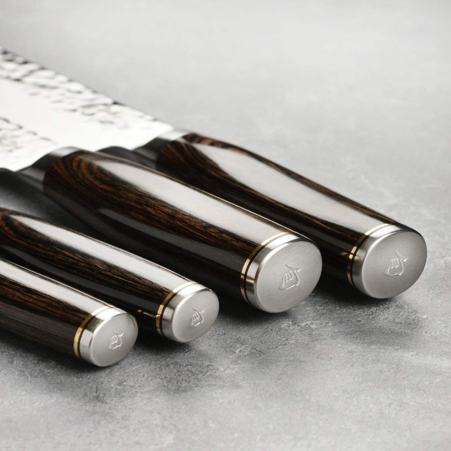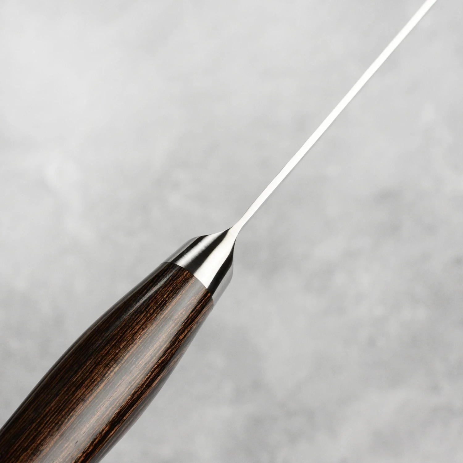 - Rockwell Hardness: 60-61; hand-sharpened Japanese double-bevel blade angle 16° (each side)