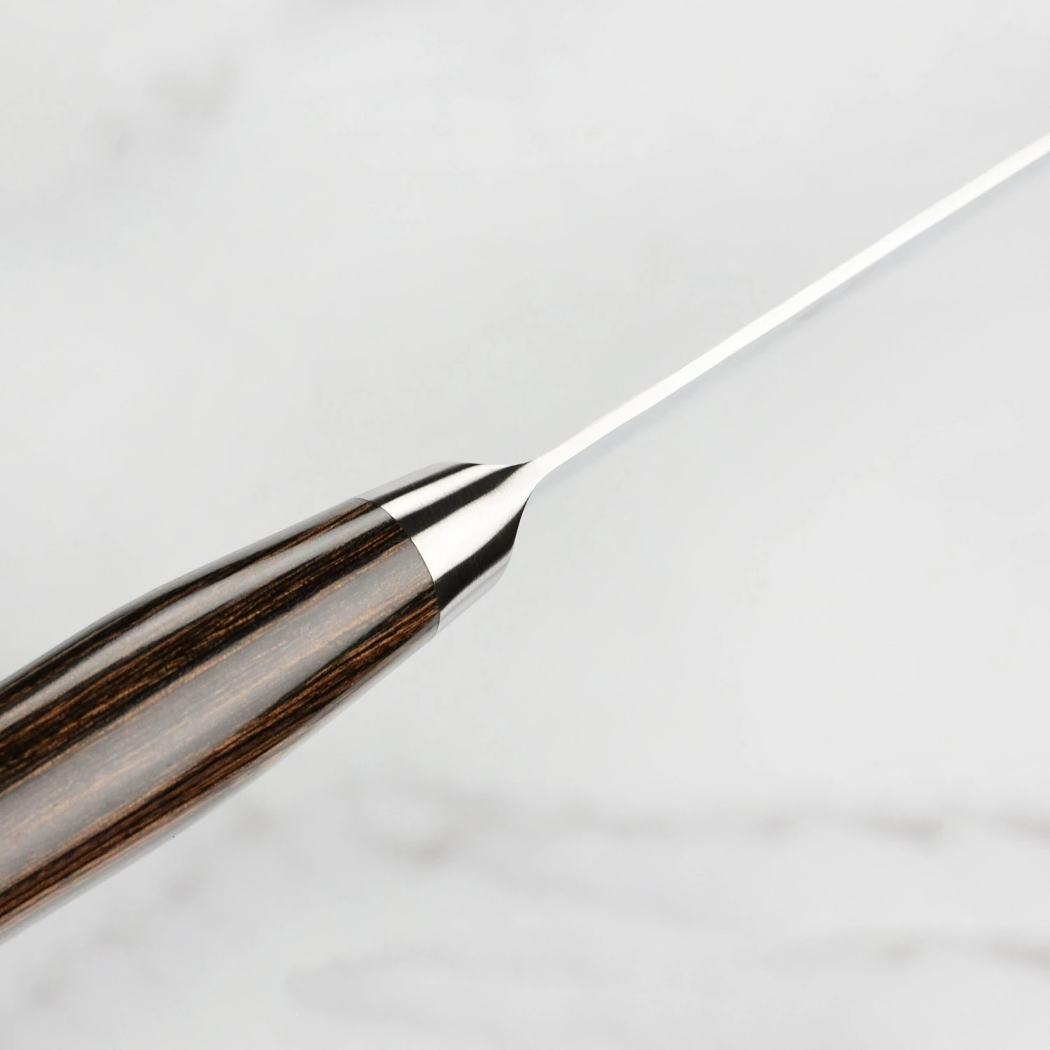 - Rockwell Hardness: 60-61; hand-sharpened Japanese double-bevel blade angle 16° (each side)