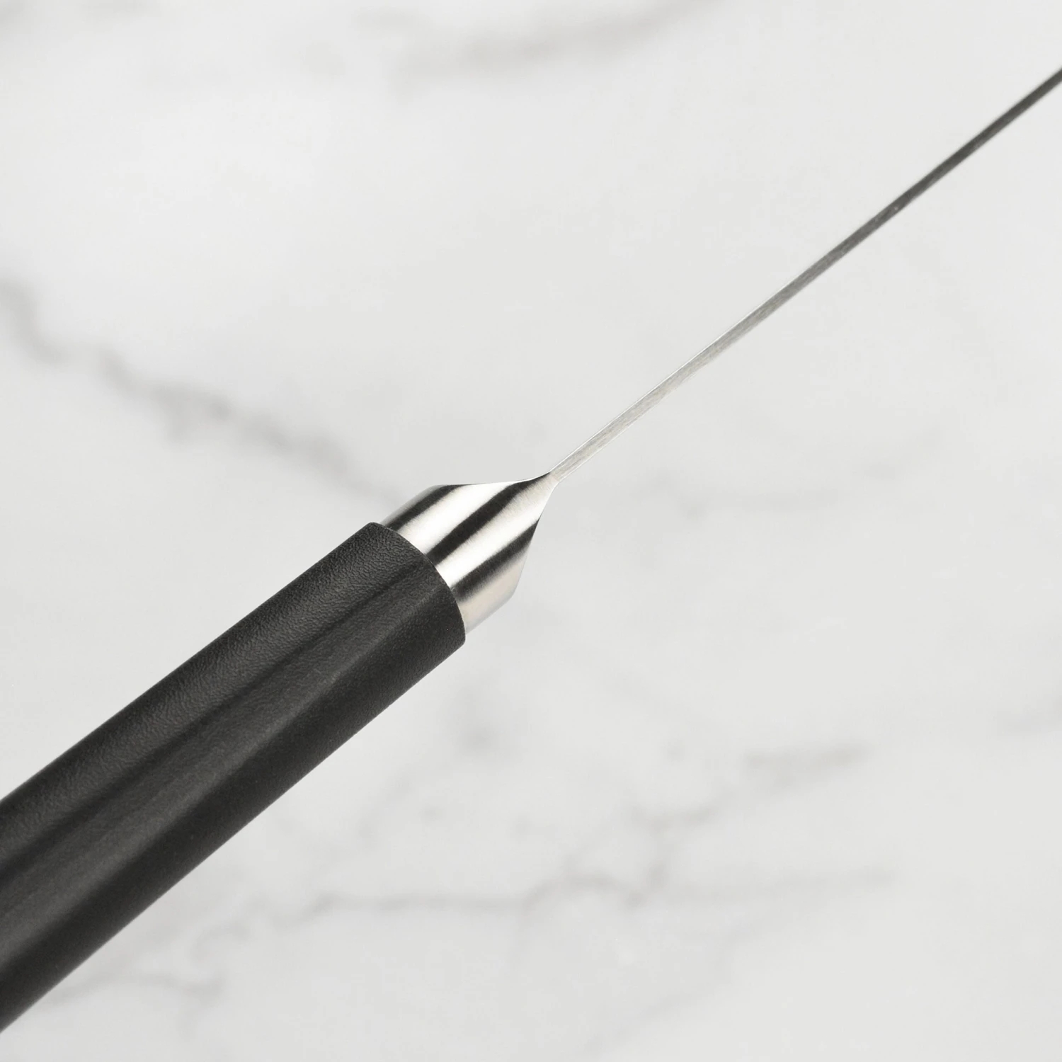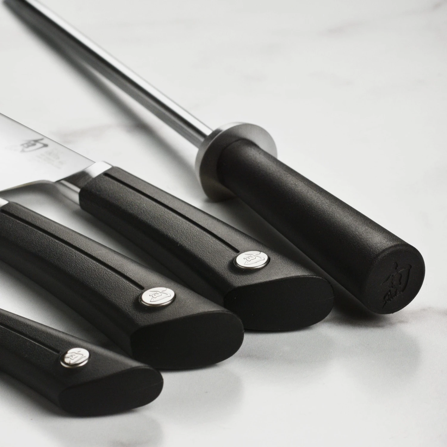 - Traditional Japanese handle design with a textured PP/TPE blend; stainless steel debossed logo